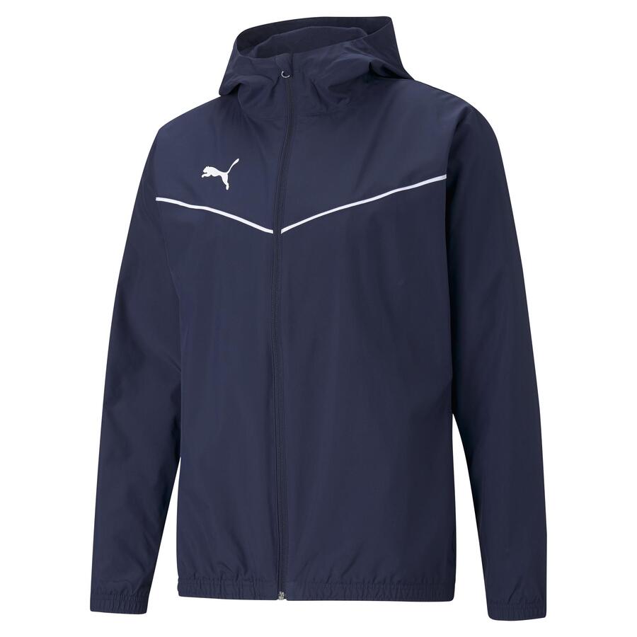 | Fully Lined Water and Wind Resistant Hooded Jacket - Full-zip closure - Zipped side pockets - Elasticated cuffs and hem - Colour contrast V-shape piping on chest - PUMA Cat Logo heat transfer on right chest - 100% Polyester |